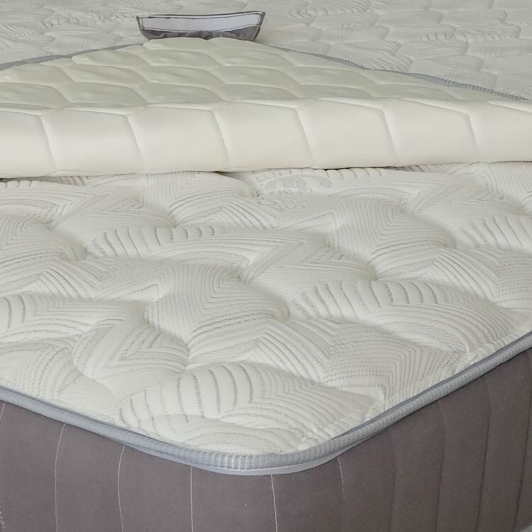 ❷ 高彈力透氣車花綿:床墊Q彈舒適的關鍵,用安全無毒檢測合格的泡綿讓全家大小都好眠。將數層泡綿以車花機台車縫在一起,使具延展性的銀離子緹花布像氣球一樣撐開,形成澎澎的立體車花,除了增加美觀更是高級床墊打造頂級睡感的關鍵