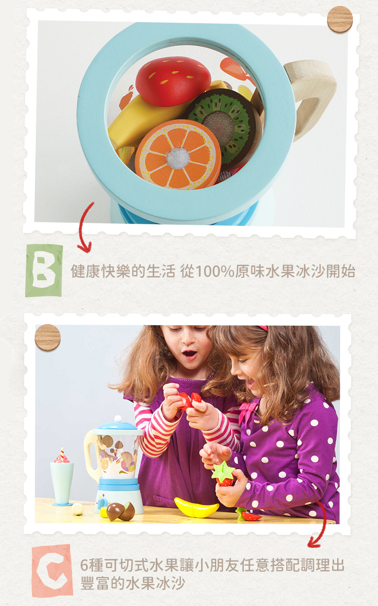 。6種可切式水果讓小朋友任意搭配調理出豐富的水果冰沙