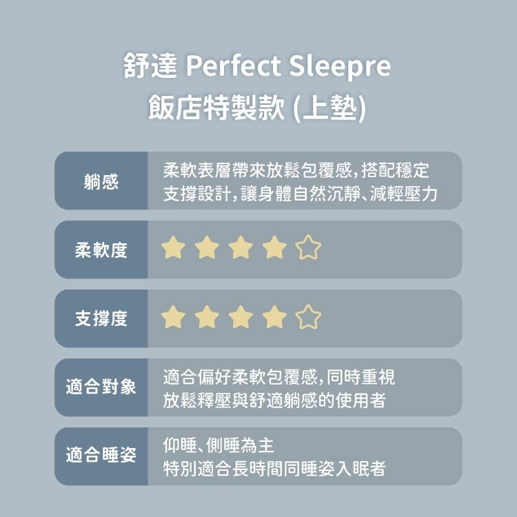 (可單獨選購上墊,也可搭配 舒達PerfectSleeper飯店特製款-下墊 使用,下墊可增加床墊舒適性及使用年限)